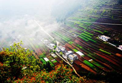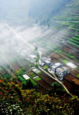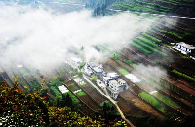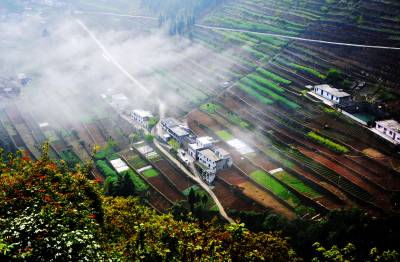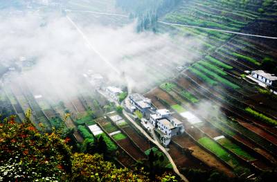 如诗如画新农村 10日,蓝天白云下,公路、良田、房屋、小草构成巴东县新农村如诗如画的靓丽景象。(视界网 梁勇 摄)