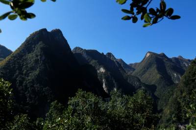金秋时节,闲暇日,为贪林泉之乐,拍摄之趣,我和单位领导二人结伴,从湖北十八里长峡国家级自然保护区的长峡峡谷中间干龙洞处直爬而上,经过2个小时的攀爬,来到了长峡峡壁半山腰。向下俯首:谷深生峡,壁立千仞,抬头仰望:崖上生峰,峡峭挺拔,形态各异,似倚天长剑,似玉女望月,似佛神观天,似玉女仙乳,气势磅礴。咱俩拿起相机在密林中钻来钻去,这儿拍拍,哪儿拍拍。不知不觉,迷路了,拼命地寻找路,却怎么也找不着。好在绝处逢生,我们正茫然无措时,突然发现前面有一片竹林。于是眼睛一亮,砰砰直跳的心稍微有些平息,我们沿着弯弯的小路爬上去,忽见密林深处露出几间房顶。那房屋的建造特别,现已经十分破旧,好像很久没人住过,就在这长满近两米高杂草的院子里转来转去,用相机记录着这里的一切。“太阳马上就要落山了,我们还在密林中转悠啥,难道今晚在这里过夜吗?”领导这样问我。“走啊,马上走。”可是我们往哪儿走呢?现在路没了,通讯信号也没了,两个就像走进迷宫一样。不行呀,拿出手机试试,老天真的开眼,恰好这里有微弱的信号,几经联系,断断续续的通话搞清了我们大体位置,原来我们的方向走反了。此时天色已经昏暗,拿出剩下不到一小杯的水,一人喝了一小口,又开始慢长的“夜游生活”,过了大约30分钟,听到远处喊声,顿时心中一亮,好像看到一丝曙光,顺着曙光拼命的往上爬,爬呀,终于接到头了。在这位老乡的带领下,翻过一山又一山,来到一家叫颜姓老者的家里已经是晚上8点25分。