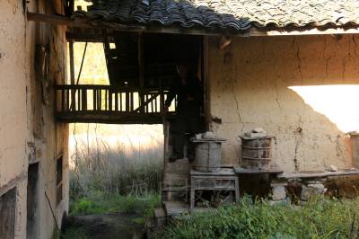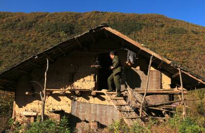 也许是蜂蜜酒的作用吧,饭后颜老说:“我们还要撕包谷,你们先睡觉吧。”“好啊,我们多年没有过个这样的生活了,我也试试。”我们一边撕包谷,颜老一边谈起村中的事来。原来这里海拔大约2100米,距离长峡下面的村庄18公里,全部靠步行,这里有四个坪,分别是下南坪、中南坪、上南坪和四南坪,统称南坪。解放前,这里住着48户,有300多人,中南坪还建有一个四合院和八大天井的房屋。那时这里家家户户都种鸦片,可富裕呢,解放后,大多的人都已陆续搬走。现在只剩4户了,共8人,其中2户是五保户,2人;2户生活还勉强可以,主要以种植药材、土豆、玉米和高山养殖为生。直到深夜我们还没有撕完,只好睡觉了。