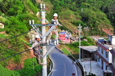 4月10日,在恩施州巴东县官渡口红花岭村,供电员工在加紧改造高低压线路施工。今年,湖北省电力公司下达恩施州第一批10千伏及以下配电网建设资金达5.8亿元,后续配电网储备项目4.9亿元,未来5年恩施州配电网将迎来高速发展黄金期。