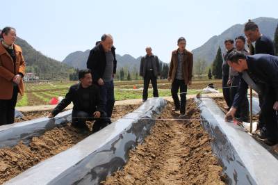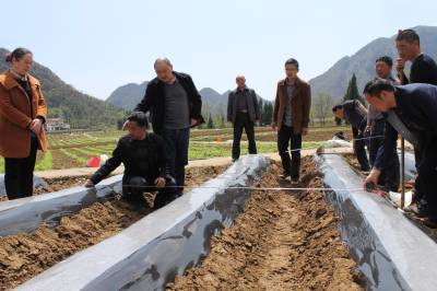 4月10日,州、县、镇烟叶技术人员在鹤峰燕子镇湖坪村二组检查指导烟农起垄。