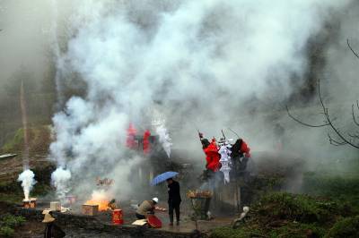 中华(清河堂)湖北巴东枣子坪张氏宗亲祭祖大典隆重举行,来自于湖北、湖南、广东、深圳等地的宗亲总共200多人佩戴黄丝带(寓意哀悼、思念、祈福、希望、盼望亲人平安)撑着雨伞、排着长队,在庄严肃穆的鼓乐声中缓缓走向枣子坪张氏第一世先祖文增公墓前。枣子坪张氏宗族族长宣布祭祖大典开始并致欢迎辞,尔后年长者宣读祭文,各支系代表致辞,向先祖敬献鲜花素果等祭品,上香叩拜先祖。祭祖大典总共九项议程,在雾蒙蒙、雨潇潇中井然有序进行,香烟袅袅、丝带飘飘、虔诚深深,达到了寻根谒祖、缅怀先祖、效法先贤、传承文明的目的。湖北巴东是巴文化发祥地,这里居住着土家族苗族等,也和全国人民一样,每逢清明节气,都有不同风格的祭祖仪式,这是一组较为规范的祭祖仪式掠影。