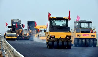 麻竹高速南漳段路面铺筑如火如荼