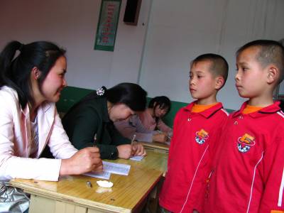 18日,郧县刘洞小学的双胞兄弟在参加该县的农村小学生英语口语竞赛中,正进入”师生对话”环节。为充分发挥农村小学现代远程教育工程效益,促进”小学英语空中课堂”的资源应用,郧县教研室如期举行了第二届农村小学生英语口语竞赛。(视界网签约摄影师曹忠宏摄影报道)