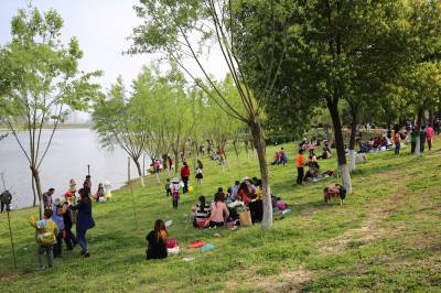 清明时节雨纷纷,刚刚过了一个阴雨绵绵的清明节后的第一个双休日,天气晴朗,春光明媚,孝感市民纷纷走出家门,来到新建的大型湿地生态公园——槐荫公园,感受春天的气息。(视界网 祝大桥摄)