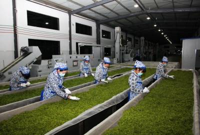 谷城汉家刘氏茶进军俄罗斯市场 眼下,正是谷城县春茶采摘黄金季节,汉家刘氏茶叶公司正在为俄罗斯精心制作出口的高档茶叶。汉家刘氏茶叶已在俄罗斯的莫斯科、科斯特罗马、弗拉基米尔市、州开设加盟、代理店50余家,今年1月又在莫斯科设立代表处和旗舰专卖店专营中高端茶叶。 4月12日晚,员工在制作高端茶之前择出粗叶以确保其质量。 谷城县粉阳路33号(县宣传部)帅瑜 摄 (手机13972211958邮编441700)
