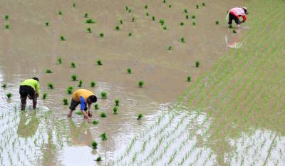 目前,恩施州各地进入插秧苗的高峰期,当地农民正忙着耕农田、栽秧苗。