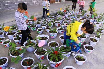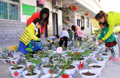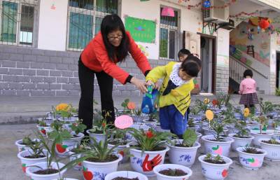 4月14日,竹山县麻家渡镇中心幼儿园的师生正在精心呵护“观察角”里的植物。该园各班级开展有关四季的主题教育活动,开辟班级“观察角”,鼓励孩子自己动手培植简易的花草盆景,方便孩子们观赏春夏秋冬的花草,了解探秘四季的特征。同时,每天让孩子给种植的花草盆景浇浇水、松松土,以培养孩子热爱劳动的好习惯,提高孩子的观察能力和审美情趣。
