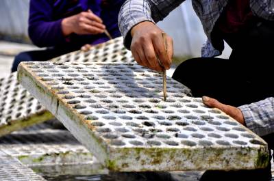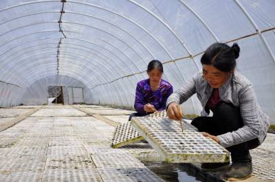 适时间苗 4月14日,在恩施市红土乡大河沟村阳光头组,烟农正在大棚间苗。 连日来,该乡烟草部门积极组织技术人员下到各育苗棚指导间苗管理工作,进行了烟叶间苗,炼苗技术培训,发放管理技术资料,提高烟叶育苗工场管理水平。目前,该乡可供种植1.37万亩移栽面积的大棚烟苗,苗齐、苗匀,长势良好。(视界网彭绍峰肖绍位摄)