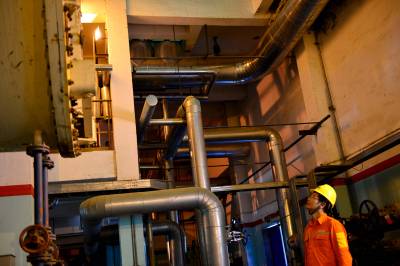 4月14日,华新水泥秭归公司的技术员正在热能发电车间巡查。
