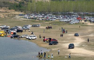 湖北南漳:一汪湖水映晚霞