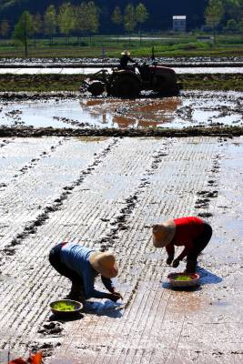 为提高抗灾保丰收能力,石花镇先后实施了小河流域治理、小型水库项目、土地整理、低丘岗地改造、小农水整治等项目,特别是溪河流域治理项目实施后,溪河流域扎拦河坝20多座,加固河堤近20公里,清理河渠近30公里,为春耕蓄水用水打下了坚实的基础,确保了全镇6.2万亩耕地种足丰收。图为黄营村农民春耕春种生产场景。
