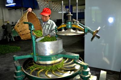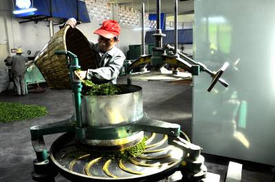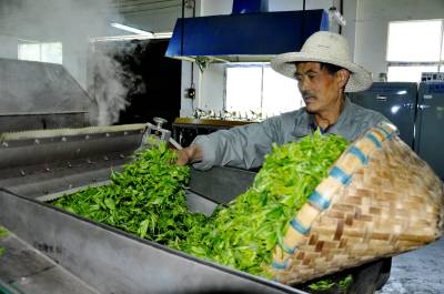 精深加工 4月16日,在恩施市富之源茶叶公司车间,工人正在忙碌加工绿茶。 今年以来,该公司引进茶叶精深加工流水线设备,提高茶产品的附加值,每年带给茶农直接经济收益1000万元,企业与茶农实现双增收。(视界网彭绍峰赵德富摄)