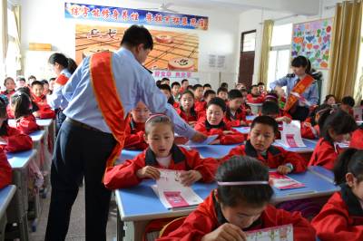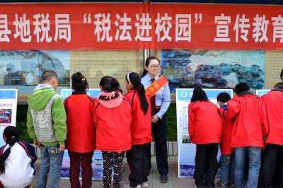 4月16日,在4月全国第24个税收宣传月里,为普及税收知识,增强少年儿童税收法治意识,郧阳区地税局工作人员来到移民区湖北省十堰市郧阳区柳陂镇中心小学,用孩子们喜闻乐见的“光头强”动画形式,生动鲜活地为900名移民小学生进行了“税法进校园”税法知识讲座等系列活动,“零距离”交流学习办税流程和税收知识,并为100多名贫困移民学生捐赠了新书包、字帖、文具盒、童话故事等200多件。