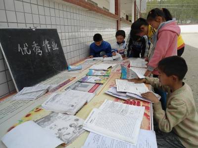 16日,十堰市郧阳区五峰乡界牌完全小学学生在观摩优秀作业本。该校举行学生“优秀作业展”活动,集中展出书写工整、格式标准、正确率高的“优秀作业”,组织学生观看、学习,进一步提高学生的汉字书写水平,培养良好的学习习惯,传递学习正能量。(视界网 周学山)