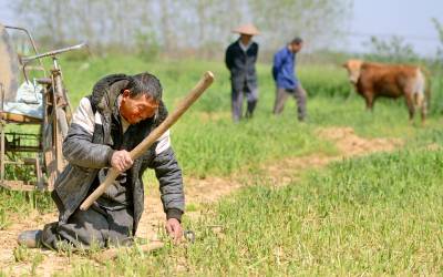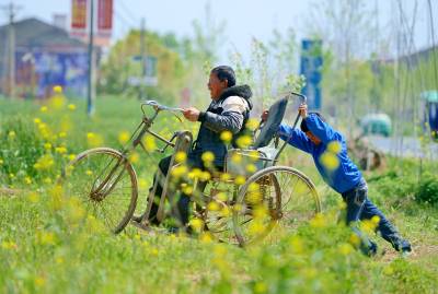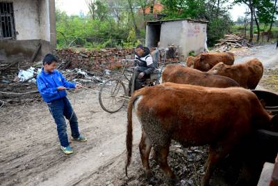 4月13日黄昏,应城城北杨畈村小路上,一个双腿残疾的老汉用手艰难地推着破旧的轮椅,牵着4头牛艰难地前行。自行车改造而成的轮椅吱呀作响,摇把已经破旧得不能用了。 他叫肖五毛,今年61岁,曾是县里的养猪模范,30年前,一次意外车祸使他双腿残疾。从此,他依靠轮椅每年养四头牛,起早贪黑地忙碌,买回小牛放养,长大后卖掉后再买小牛放养,自食其力盖起了房子,娶了一个患脑膜炎后遗症的女人为妻,生下了儿子肖更生。 去年,妻子发病出走,至今下落不明,肖五毛与12岁的儿子相依为命,用残疾的身躯支撑着这个家。懂事的肖更生没辜负父亲的期望,成绩一直是班上的尖子生。 肖五毛说“儿子取名更生,我就是希望他将来自力更生,我要靠自己放牛,不管多难,我要把伢养大。”肖五毛老来得子,也就格外疼爱儿子,他经常告诉儿子,哪怕生在贫寒的家中,更要有志气靠自己的双手改变命运。儿子肖更生则从小立志“我要考上大学,长大养爸爸。” 图一:肖五毛推着破旧的轮椅放牛。 图二:父子亲深。 图三:儿子肖更生推着轮椅上坡。 图四:肖五毛从轮椅下来,跪在地上栓牛绳。(记者刘曙松 视界网 郑毅 丁艳红 陶茂)