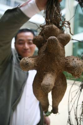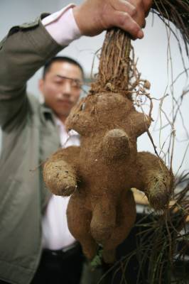 湖北襄樊的高先生在街头花400元买了个人形何首乌,很是得意。5月19日,经药材专家鉴定,高先生的这株人形何首乌原来是假的,为人造加工品。 这株”何首乌”20多公分长,起码4公斤重。从外形看,颇具人形:脸部眼、耳、鼻、喉一应俱全,四肢粗壮、胸和肚子外鼓。 据一位和药材打了几十年交道的人士介绍,这个人形何首乌是假的,是骗子将某种植物根茎放入人形模具中后,再将人形模具放入土中种植,经过一段时间生长,根茎最终长成了人形。 据悉,好多人认为何首乌是名贵中药材。今年来,襄樊已出现至少10起利用人工制成的”人形何首乌”行骗的事件。假何首乌通常用山药植物的根进行雕琢,然后埋在松软的土中培植,最后将粗壮的藤条齐根割断后插上去制成。 专家称,何首乌能长到几斤多的极为罕见,在短时间内出现两例的可能性更低。最重要的是,何首乌呈人形的传说只是三分像七分想,真正的何首乌与人形差距很大。如果说它与人形一模一样,那几乎是不可能的。其实何首乌在中医治疗中应用很广,属常用药材,到处都能买到。何首乌价格不贵,更没有延年益寿的神奇作用,市民无需把它看得神秘。 提醒人们,如果发现有人出售人形何首乌者,一定要谨慎小心,先鉴定后购买,以免上当受骗。