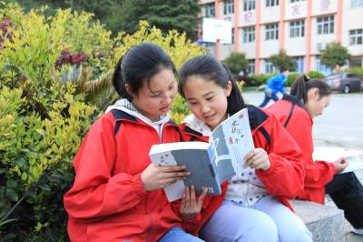 4月20日下午放学后,湖北省十堰市郧阳区鲍峡镇初级中学七(4)班在校住读的张笑梅和何欣悦等同学在学校植物园旁认真阅读白话本《史记》。新学期开学始,鲍峡中学为培养学生养成良好的阅读习惯,向全校师生提出了“快乐阅读健康成长,人均课外阅读十本好书”的倡仪,充分发挥学校图书室二万余册图书的作用,并在师生中每月开展评选阅读之星活动,班班建立图书角,方便学生借阅图书。