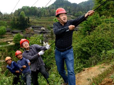 4月22日,来凤县革勒供电营业所组织施工队为大地龙村 “农村幸福院”架设最后一档专线。