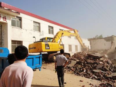 5月19日下午,郧县刘洞镇九年一贯制学校校门外机器轰鸣,大门前的一排农家用于出租的房屋在挖掘机的敲击中轰然倒下。近期,郧县各地政府部门积极开展校园周边环境治理工作,对给在校师生造成安全隐患、不利学校健康发展的场所和设施全力予以取缔或拆迁,用”大手笔”彰显政府在校园周边环境治理上的信心和决心。(湖北省郧县刘洞镇九年一贯制学校高超邮编442525)