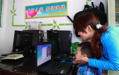 4月21日,竹山县宝丰镇天英留守儿童托管中心的孩子正在和在外务工的父母进行视频通话。近年来,该县大力实施民生“暖巢工程”,多措并举关爱留守儿童。县政法委、卫计局、计生协会联合县教育局、县妇联、团县委、关工委等部门,在全县有序创办“留守儿童托管中心”、“留守儿童爱心家园”,安装“亲情连线”电话和免费视频聊天电脑,建立“爱心妈妈”等社会呵护网络,让全县1万余名留守儿童“心有人爱、身有人护、难有人帮”。