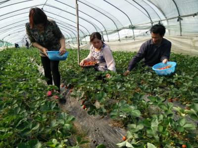 种植户唐女士告诉记者,她家种了3亩多地的草莓,因为收获期有4个月,春节前后是丰收期,刚开始是每斤50元,现在已经到了尾摘期,每斤售价在5元。即使不是周末和节假日,草莓基地日接待游客量都可以达到30-50人以上,日均销售量在200斤左右,月纯收入2-3万元左右。