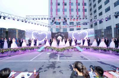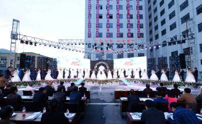 当晚,“情定麻竹高速,牵手魅力保康,奔跑吧幸福”盛大工地集体婚礼在麻竹高速保康项目部隆重举行。来自建设一线的22对新人合着庄重的婚礼进行曲在亲朋好友的祝福里、在一线工友的注目下、在高速公路的见证中,快乐幸福的走入婚姻殿堂。