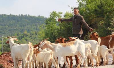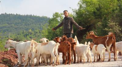 4月22日,安陆市王义贞镇唐僧村农民彭瑞朋在放养羊群。该市农业、畜牧部门注重发挥山场优势,积极导农民发展养殖致富;目前已培植了专业养羊户300余户,羊只总数突破户20000只,农民年养羊增收1500万元。 (视界网 王代金 摄影)
