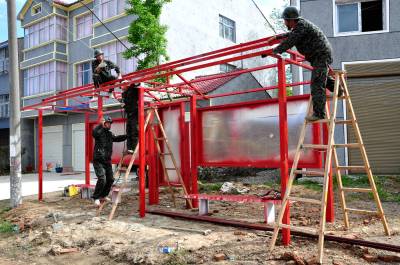 随着湖北省第五轮“三万”活动的全面推进,钟祥市长寿镇认真抓好村村通客车的“候车亭”建设,截止4月23日,全镇15个行政村全部确定了候车亭的准确位置,并且正在建设之中。预计本月底可以全部交付使用(视界网 李景发摄)