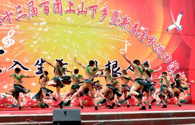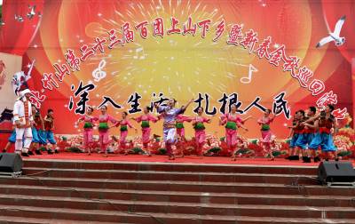 4月23日,湖北竹山第二十三届百团上山下乡 “深入生活•扎根人民”巡回演出在该县堵河广场启动,演出的12个原创歌舞类节目,将中国绿松石之乡、高香型绿茶之乡、堵河剪纸、堵河号子、女娲传说、十星级文明农户创建、调水源头生态建设等近百种反映竹山地域文化特色元素,融于到节目当中,为竹山本土人奉献了一台有内涵的视听盛宴。该套节目除在全县17个乡镇调演外,还将亮相于4月28日-5月3日在北京石景山区八大处公园举行的“竹山茶文化周”上,将竹山风土民情、地物风貌展现给首都观众,拉近竹山与首都的距离,促进两地文化交流和带动竹山经济繁荣。