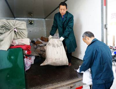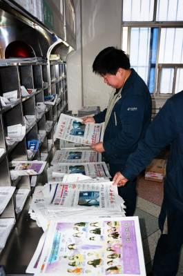 4月24日,十堰市郧阳区邮政局投递站的邮递员们在九点多开始将十堰市送过来的报刊杂去和邮件卸下车。卸车结朿后第一道工序向各片区邮递员分发各级党报党刊和其它报纸邮件。第二道工序是各片区邮递员向各单位标签格里分发党报党刊,分发结朿后各片区邮递员将报刊及邮件叠好装包,100多斤邮件装好捆扎好后已是10点多钟,各片区邮递员骑上电动车向各片区而去投送。