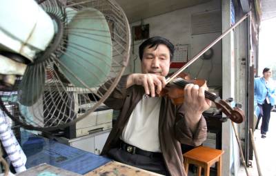 60岁的李德超曾在文工团工作,一直专心小提琴演奏,即使退休后自营打字复印店,依然琴不离手。李老表示:假如遇到有艺术天赋小孩,家中又无力培养,他愿免费收徒。