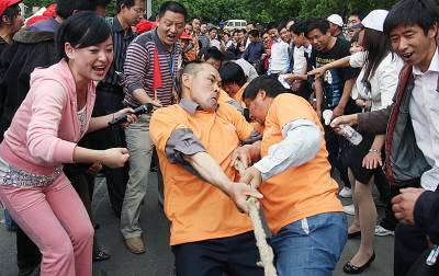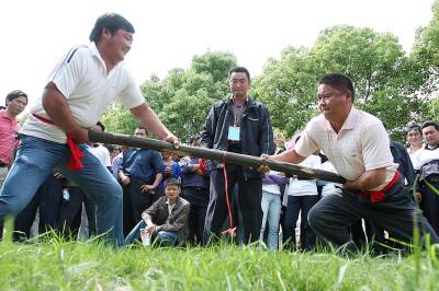 较劲昨(20)日,省运进东宝·首届农民趣味运动会在荆门市东宝区漳河镇拉开帷幕。来自漳河镇各村的30个代表队256名农民参加了二人三足跑、抵扛、袋鼠跳等项目的比赛。此次农民趣味体育运动会将在该区每个乡镇举办一场,以此掀起全民关注省运、全民参与省运的热潮。视界网朱舜摄