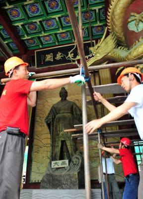 2010年5月20日,三峡黄陵庙禹王殿大修工程正式开工。黄陵庙坐落在三峡西陵峡中段长江南岸黄牛岩下的湖北省宜昌市夷陵区三斗坪镇,据三峡大坝下游2公里,是长江三峡地区保存较好的唯一一座以纪念大禹开江治水的禹王殿为主体建筑的古代建筑群。2006年5月,黄陵庙被国务院批准列入第六批全国重点文物保护单位之一。 2008年来,宜昌市夷陵区筹资800万元,相继对黄陵庙山门、武侯祠、古民居和文物展厅等一、二期工程进行了维修,三期工程——禹王殿大修至2010年9月底结束。届时,黄陵庙将”重现”三峡治水历史文化原貌和文化精神,与三峡旅游实现对接。本报视界网张国荣摄