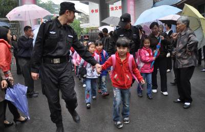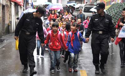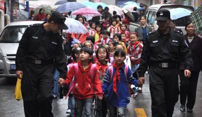 5月20日,恩施市公安局特警大队队员在恩施市实验小学护送学生下课。为防止校园发生恶性事件,恩施市公安局特警大队全力投入护校护学行动,真正落实”一校一警”,确保校园安全。