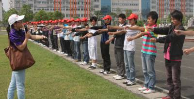 600名学生参与寻根节排练5月20日,随州技师学院操场上,金鹰传媒导演指挥学生参与寻根节开幕式方阵排练。据悉,2010年世界华人炎帝故里寻根节拜祖大典开幕式上,该市近600名大、中专学生将参与《护旗》、《典籍》、《百家姓》等方阵演出活动(如图一。)图二、300名大学生合唱团齐唱歌曲《国家》、《炎帝大歌》。(本报视界网杨文明摄)