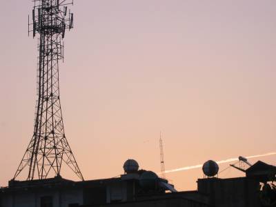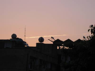 《空中航线》5月19日清晨,天气晴朗,东方泛红,一架飞机自南向北,画出一道雪白的空中航线,格外显目耀眼。