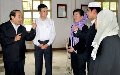 22日,全国政协副主席阿不来提·阿不都热西提(左二)率领的全国政协加强城市民族工作调研组一行来黄石市视察指导工作。图一:黄石市委书记王建鸣(左三)、市政协主席郭远东(左一)陪同阿不来提·阿不都热西提视察我市清真寺,并与清真寺穆斯林亲切交谈。图二:黄石市委书记王建鸣(左二)陪同阿不来提·阿不都热西提(左一)视察我市清真寺,并与清真寺穆斯林亲切交谈。黄石市黄石日报摄影部邱孝威摄