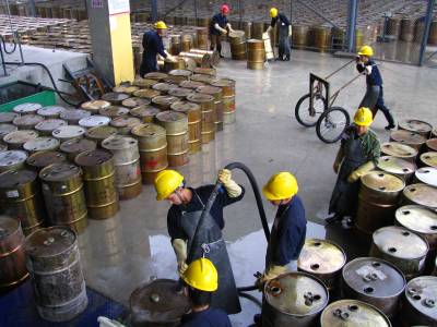5月22日,工人在搬运黄磷产品。湖北尧治河集团1万吨黄磷生产项目日前在湖北省保康县马桥镇周湾工业园区建成投产运行。该项目总投资8000万元,建成后年可实现销售收入1.5亿元,税金1500万元。(本报世街界网杨韬摄)