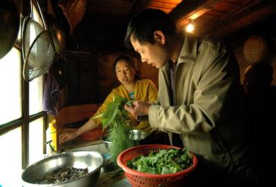 农家盼周末5月22日,周末的神农架林区松柏镇八角庙村梅发文等来了今天第一拨客人。前一天已经有人打电话预约要到他家吃饭,看到客人没有来,他就接待了到家门口的客人。梅发文一家三口,儿子上初中。种的地不多,用他太太的话说,请几个工,一天就种完了地。他们利用离城区松柏镇不远的优势,夫妻俩在家一边种着地,一边操持着农家饭。一年卖着地里的菜,卖着喂养的鸡,还有每年的年猪肉,足可用净赚5、6万元。因此,他们对周末特别的喜爱。