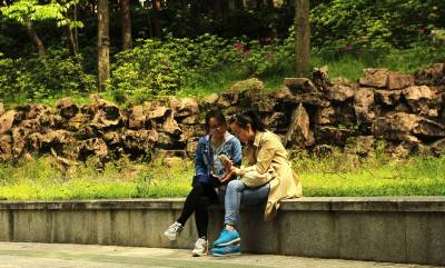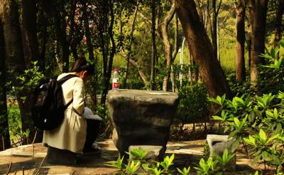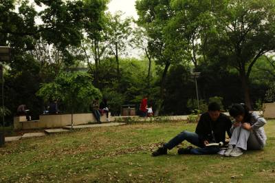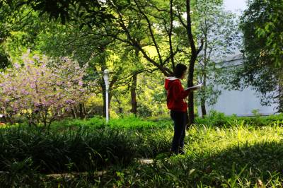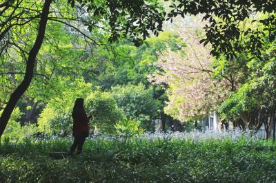 华师大校园的春天,风景如画,鸟语花香,也深深吸引学子家长,留连往返。一日,在校区向一对老年夫妇问世:“张光年的铜像在那里?就是那个<黄河大合唱>的词作者?”老人答:“哈哈,我们是来遛弯的,也是来看风景的。”一会儿,又遇见一背包女士,她说:“我来这里考试,不熟悉这里情况哟。”走在校区的林荫路上,,看到三名中年妇女带着小孩,留连于"桃李源"间,正想搭讪问路,她们主动过来,要求帮忙拍照,闲聊中得知她们是外地的,到华师是一看孩子二看风景,这真是: