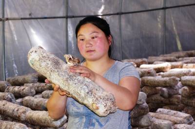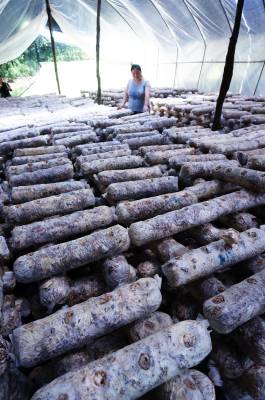 4月28日,十堰市郧阳区茶店镇曾家沟村2组村民王旭霞正在大棚内检查香菇菌袋培养情况,今年26岁的王旭霞又投资20万元种植了4万袋香菇菌袋,使她的香菇种植比去年增加了一倍。王旭霞2009年高中毕业后就回村创业,选择了香菇种植,刚开始摸索香菇种植时由于不憧技术走了不少弯路,后请来老师传帮带了一年多才掌握了香菇生长的控制技术,香菇种植有了起色。为解决销路她又学会了开车,将自己种植的香菇送到镇上,城区和十堰市销售,如今她所种植的香菇不用出门就有商贩上门收购,直销超市和饭店,仅去年种植的2万袋香菇就收获6万斤,创产值30余万元。王旭霞的囗头语是"在外打工不如自己在家创业"。