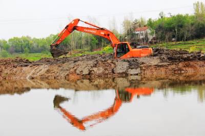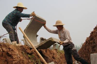 4月29日,施工人员在安陆市王义贞镇罗龙村农田整治现场作业。为改善农业生产条件,推动农业可持续发展,该镇汝南、朱桥两村3500亩农田被列入2015年中央农业综合开发改造项目;罗龙、彭畈、花园、杨港等9村14541亩被列入中央财政现代农业小农水重点项目(两项目总投资逾2000万元)。目前,两项目已完成80%的工程量,其余工程正在紧张有序进行中。(视界网 王代金 摄影)