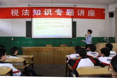 4月29日,竹山县国税局税务干部在竹山二中开展以“新常态,新税风”为主题的税法知识专题讲座,用生动活泼的语言向学生讲解了税收的基础知识和发生在身边的税收故事,让学生真切地感受到税收与生活息息相关。连日来,县国税局常态化开展“税法进校园”主题活动,以学校为税法普及宣传的主阵地,让学生从小了解税收“取之于民,用之于民”及依法诚信纳税的重要意义。活动中,税务干部走进课堂宣传税法,组织师生共同开展“争做税法宣传员”的主题班会、税法征文和税法知识竞赛,充分发挥“小手拉大手”的辐射作用,感染亲人、带动朋友、影响家庭、传播社会,在全社会形成了解税收、学习税收、依法诚信纳税的良好氛围。