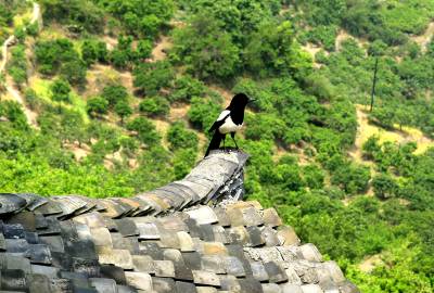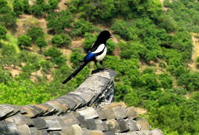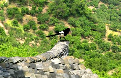> 三峡链子崖:可爱喜鹊迎嘉宾