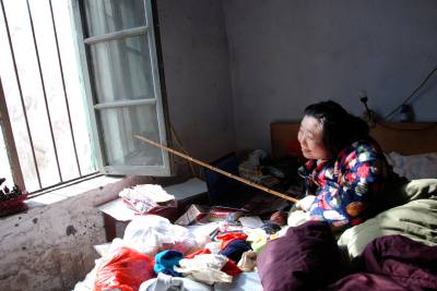 见到郑丽娟时她正坐在床上,用一根光溜的竹竿拨开窗户,阳光透过窗户打开在郑丽娟的床上,从窗子向外望去,几棵泡桐树含苞未放,太阳底下,一条浅浅的河床如一幅徐徐展开的长卷,耳边不断流淌着潺潺的流水声音。郑丽娟指着窗外的泡桐树骄傲地告诉记者“现在还没到时候,到了夏天树上开满了花,可漂亮。”