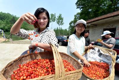 4月30日,湖北省南漳县举办首届有机樱桃采摘节活动,数百名游客在该县城关镇榆树岭村“樱桃谷”体验采摘樱桃的乐趣,品尝风俗浓郁的农家饭,欣赏千亩樱桃园的迷人风光。据悉,该村是全省首批休闲农业旅游示范村,全村目前已发展连片樱桃800多亩,户平增收7500元,“樱桃谷”已在南漳逐渐形成了一个休闲旅游的新天地。目前正值樱桃大面积成熟期,本地和周边地区游客前来采摘品尝,并且每天有众多经销商前来收购,将樱桃销往武汉、荆门、襄阳等地水果批发市场及大型超市。据了解,南漳樱桃种植面积达4500亩,年平均产量135万斤,年产值及旅游综合收入达1500万元以上。