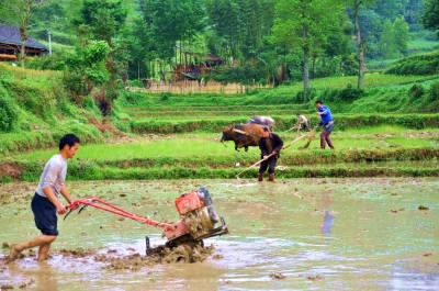 黄牛、水牛、铁牛和谐春景图5月23日,笔者在恩施市红土乡乌鸦坝村茅坝淌组看到,赵泽连正在赶着”铁牛”为缺劳力的农户耕水田。黄牛、水牛、铁牛,犁耙水响,牛耕人耙,构成一幅和谐春景图。 近年来,该乡青壮年劳动力大部分外出务工经商,在家种地的多是妇女和老人,农忙季节需要雇人帮助干农活,因此,农事”钟点工”便应运而生,从事”钟点工”的是农村剩余劳动力。”钟点工”的劳动报酬一般按照劳动强度、农活技术熟练程度而定。他们忙上十天半个月,就有千余元的收入。今年以来,在恩施农村,像赵泽连这样的农事”钟点工”十分走俏。 据了解,目前该乡共有2000多名农事”钟点工”活跃在田间地头,他们既解决了缺乏劳动力农户的燃眉之急,又在家门口挣了钱。(视界网签约摄影师彭绍峰摄)红土乡政府13329820218
