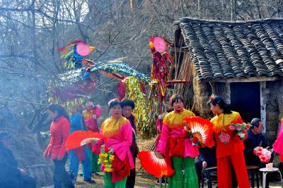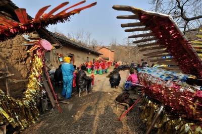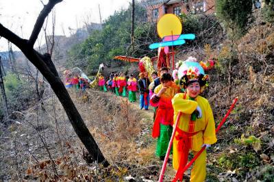 郧阳凤凰灯2014年荣登第四批国家级非物质文化遗产名录。“郧阳凤凰灯舞”是郧阳民间独有的一种传统舞蹈艺术形式,有“楚人崇凤活化石”之称,具有多种类本土文化综合特性和汉民族文化特征,是中国汉族民间舞蹈中唯一的灯舞艺术形式,有着重要的研究和艺术价值。其表演按凤鸣、出巢、游园、寻花、戏牡丹、鹐翅、理羽、擦痒、打盹、朝阳、扑翅等程序依次进行,并配以风格独特的凤凰灯舞曲调,跌宕起伏,激越欢快,凸现出浓郁的地方特色。凤凰灯是用竹篾扎制骨架,用细布、彩纸裱糊外形,从头到尾长约8米,两翼展开宽约2米,表演时双翅能扇动,凤尾可翘动。舞蹈表演时,一人掌凤头,一人掌凤身。另有6至10人分别举着花灯,伴随音乐,舞动于表演场地四周。音乐伴奏古朴典雅,曲牌大都来自戏曲音乐和民间吹打乐,每年春节、元宵节期间在乡村农家门前、集镇街头演出,尤以正月十五、十六最盛。(视界网 吴成林 摄)