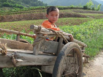 5月23日,郧县刘洞镇杨河村一小孩正坐在地头的拉车上等待爷爷收工回家。该镇每年因大量青壮年要外出务工,他们临走时就把孩子留给爷奶照顾,这些留守儿也就跟着爷奶出入田间地头,孩子的一部分时间就在农用拉车上度过。